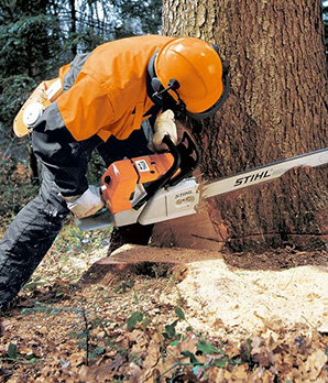 - Обеспечение безопасного отхода лесоруба от падающего дерева. После того как дерево начнет падать у рубящего человека должен быть заранее проработанный путь отхода.